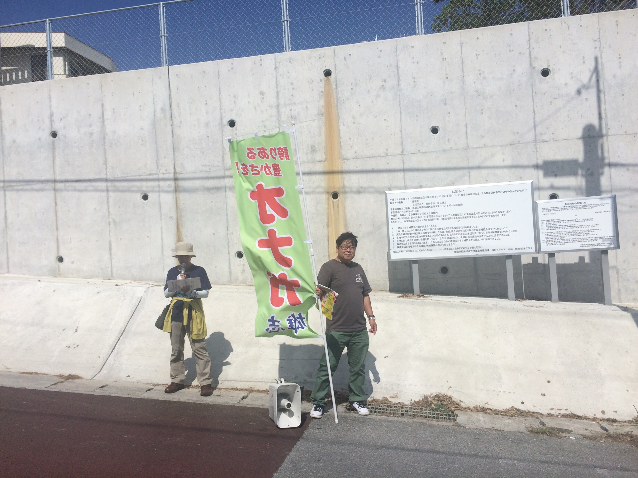 28日今日も沖縄協同病院前の交差点でお手振りから始まり、午前中はハンドマイク宣伝に行きました。ハンドマイクで翁長さんの訴えを行っていきましたら高齢のご婦人から激励とジュースの差し入れをもらいました。2時間で17箇所のスポット演説を行いました。昼からは那覇市内のビラまきに出ました。今日もいちにち知事選支援のとても有意義なものになりました。